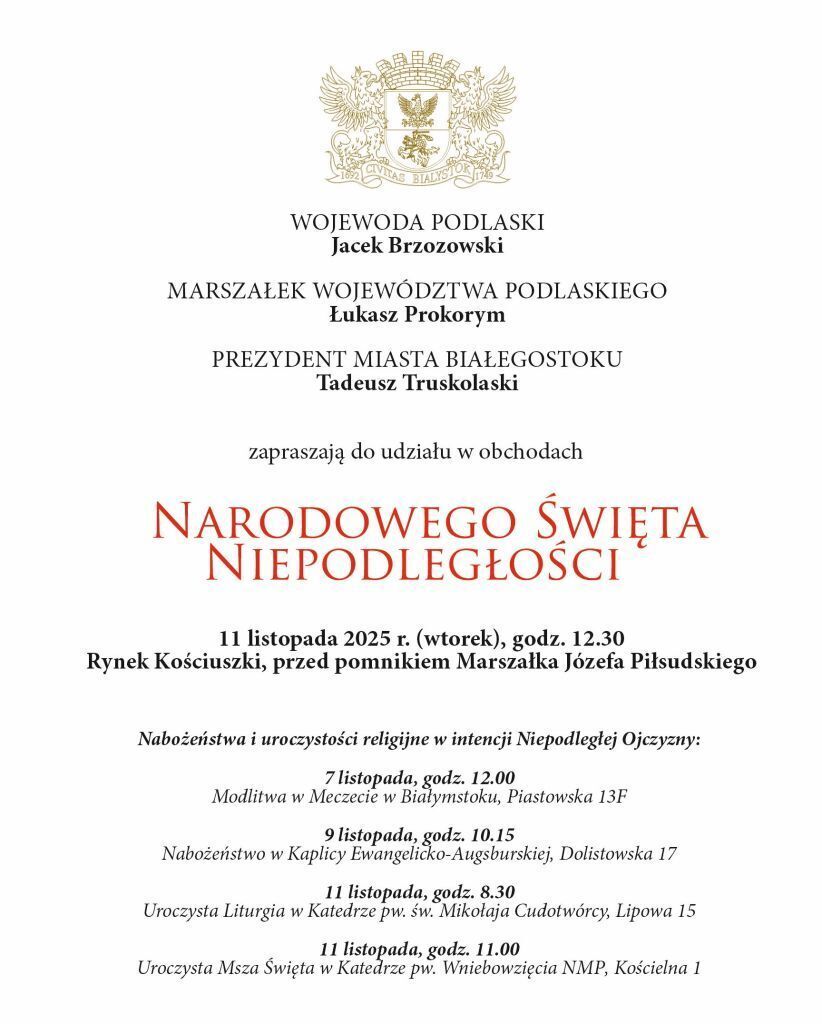 We wtorek (11 listopada) w Białymstoku odbędą się uroczyste obchody 107. rocznicy odzyskania przez Polskę niepodległości. Wspólnie uczcimy pamięć o tamtych wydarzeniach uczestnicząc w uroczystościach, imprezach sportowych i kulturalnych oraz wywieszając biało-czerwone flagi. Fundacja Białystok Biega zaprasza tradycyjnie na wydarzenie sportowe „Biegnę dla Niepodległej”.