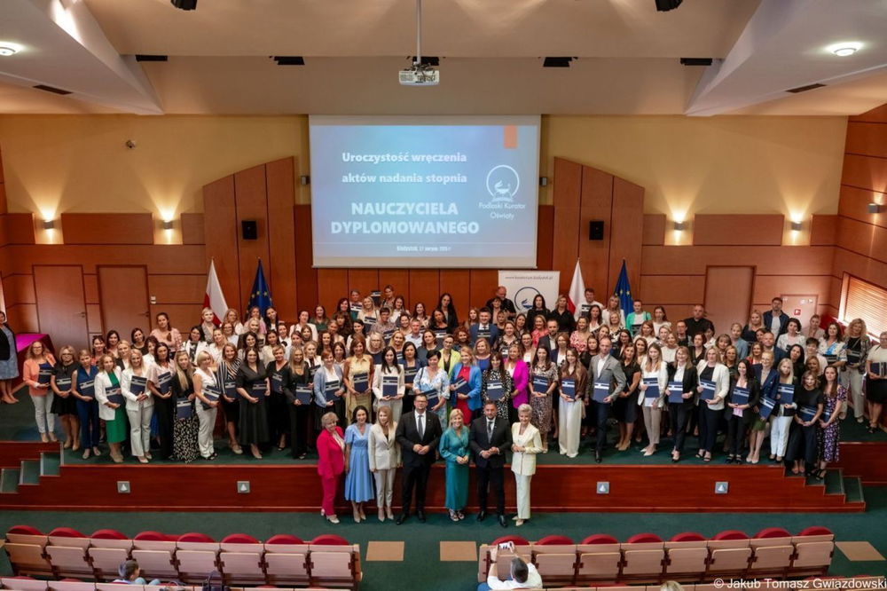 W Podlaskim Urzędzie Wojewódzkim odbyła się uroczystość wręczenia aktów nadania stopnia nauczyciela dyplomowanego. To wyjątkowy moment, podczas którego doceniono 144 pedagogów z regionu, w tym 70 z białostockich placówek oświatowych, za ich zaangażowanie, profesjonalizm i wkład w rozwój młodych pokoleń.