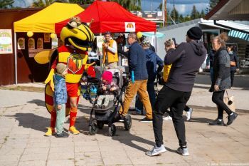 W niedzielę na jarmarku stanęła indiańska wioska. Można było z bliska zobaczyć alpaki, a każdy chętny mógł zrobić wspólne zdjęcie z maskotką Jagiellonii – znaną i lubianą Pszczółką.