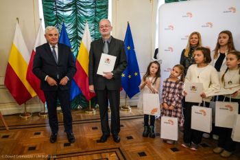 Konkurs skierowany do uczniów szkół podstawowych i specjalnych „Kto to taki – wolontariusz?” rozstrzygnięty. Dziś laureaci z białostockich szkół odebrali nagrody i wyróżnienia z rąk prezydenta Tadeusza Truskolaskiego.