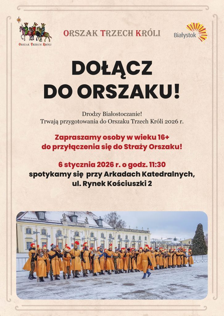 We wtorek (6 stycznia 2026 r.) ulicami Białegostoku tradycyjnie przejdzie Orszak Trzech Króli. Białostoczanie w taki sposób będą obchodzić święto Objawienia Pańskiego już po raz trzynasty. Orszak wyruszy pod hasłem „Nadzieją się cieszą!”.