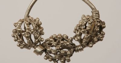 ZAUSZNICE, Daniłowo Małe, gm. Łapy, woj. podlaskie, wczesne średniowiecze, 2. poł., XI–XI/XII w., srebro, śr. kabłąka 2,4 cm, średnica paciorków...