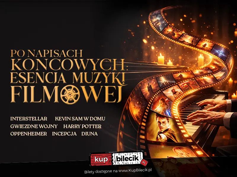bilety: Film się kończy. Ekran gaśnie. A muzyka zostaje -- czasem na całe życie. Ten koncert jest hołdem dla melodii, które nie potrzebują obrazu, by poruszać najmocniej. Koncert "Po napisach końcowych: Esencja muzyki filmowej" przeniesie Was w fascynujący świat nagrodzonych Oscarem kompozycji Hansa Zimmera, Johna Williamsa i Ludwiga Göranssona, wykonanych w specjalnych aranżacjach fortepianowych. Każda nuta i każdy dźwięk pozwala poczuć emocje towarzyszące bohaterom filmów, tworząc niezwykłą, filmową atmosferę na żywo. W kameralnej przestrzeni, rozświetlonej blaskiem świec, dźwięk nabiera szczególnej głębi, a atmosfera sprzyja skupieniu i emocjonalnej bliskości z muzyką. Po napisach końcowych: Esencja muzyki filmowej artyści: Marcin SanakiewiczFilm się kończy. Ekran gaśnie. A muzyka zostaje — czasem na całe życie. Ten koncert jest hołdem dla melodii, które nie potrzebują obrazu, by poruszać najmocniej. Koncert “Po napisach końcowych: Esencja muzyki filmowej” przeniesie Was w fascynujący świat nagrodzonych Oscarem kompozycji Hansa Zimmera, Johna Williamsa i Ludwiga Göranssona, wykonanych w specjalnych aranżacjach fortepianowych. Każda nuta i każdy dźwięk pozwala poczuć emocje towarzyszące bohaterom filmów, tworząc niezwykłą, filmową atmosferę na żywo. W kameralnej przestrzeni, rozświetlonej blaskiem świec, dźwięk nabiera szczególnej głębi, a atmosfera sprzyja skupieniu i emocjonalnej bliskości z muzyką. Bilety do nabycia na: KupBilecik.pl |